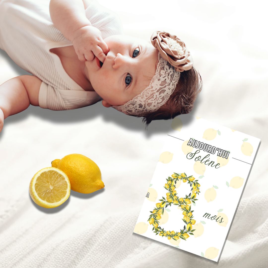 Chaque carte est illustrée par un fruit coloré, apportant une touche de douceur et de fraîcheur à vos photos. De la naissance jusqu’au premier anniversaire, elles vous accompagnent pour figer dans le temps les étapes les plus importantes : un joli rituel qui vous permettra, des années plus tard, de revivre ces souvenirs avec émotion.